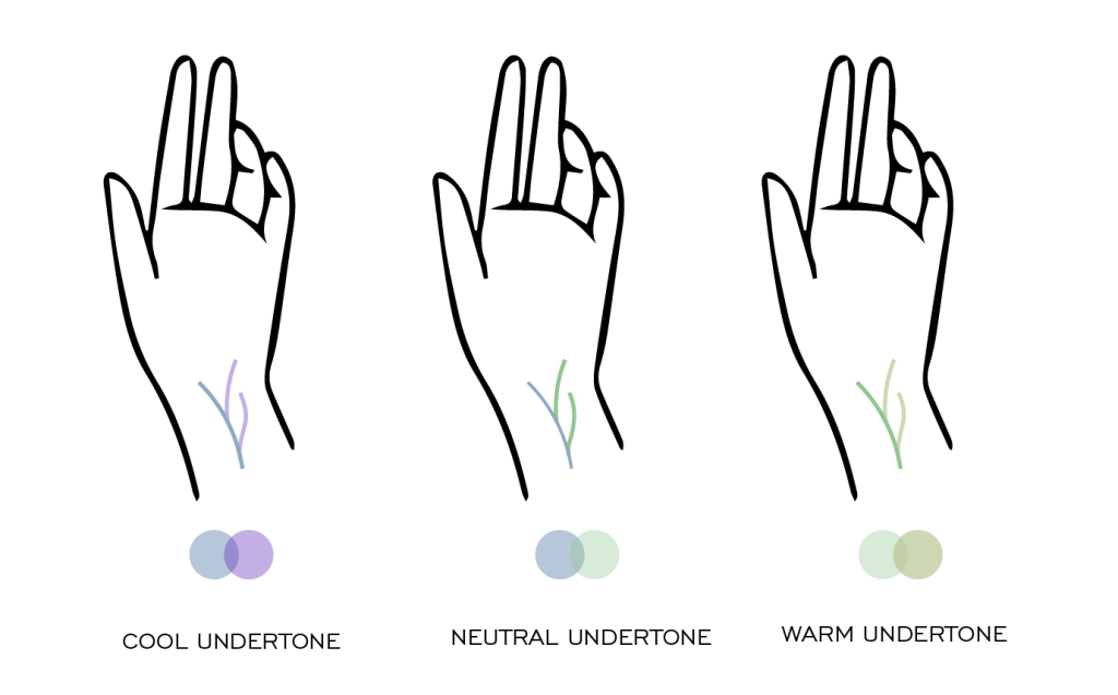 Co to takiego PODTON? To kolor znajdujący się pod widoczną powierzchnią skóry, który wpływa na jej ogólny odcień. Aby go określić, przytrzymaj dłoń w naturalnym świetle słonecznym i spójrz na żyły na nadgarstku. Jeśli mają one kolor zielonkawy – twój podton jest ciepły. Jeśli wpadają w niebieski lub fioletowy – twój podton jest chłodny. Natomiast jeśli trudno to rozróżnić, ponieważ żyły są między kolorem zielonym a niebieskim – masz podton neutralny.