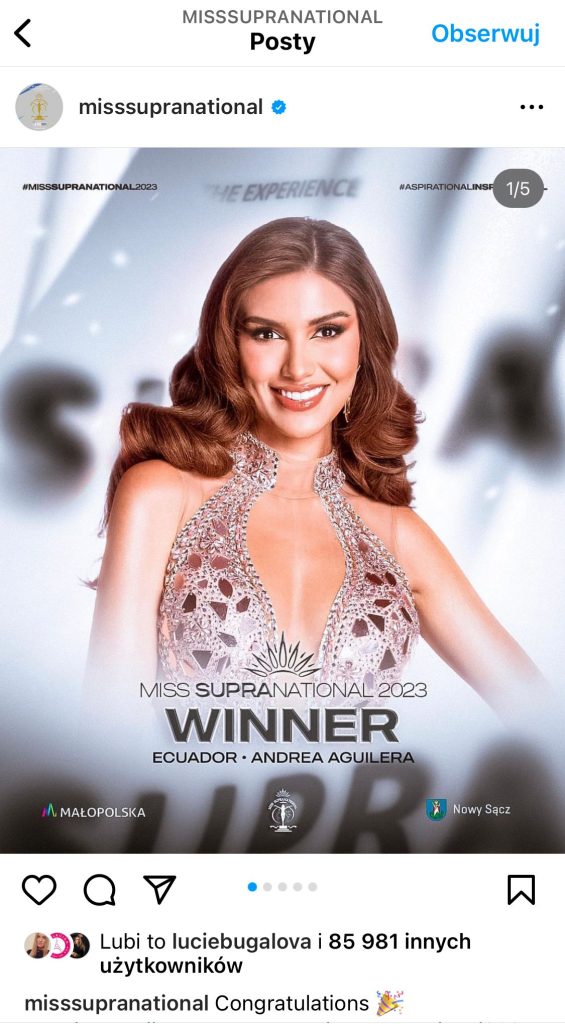 Tytuł Miss Supranational 2023 otrzymała Andrea Aguilera z Ekwadoru. Serdecznie gratulujemy!